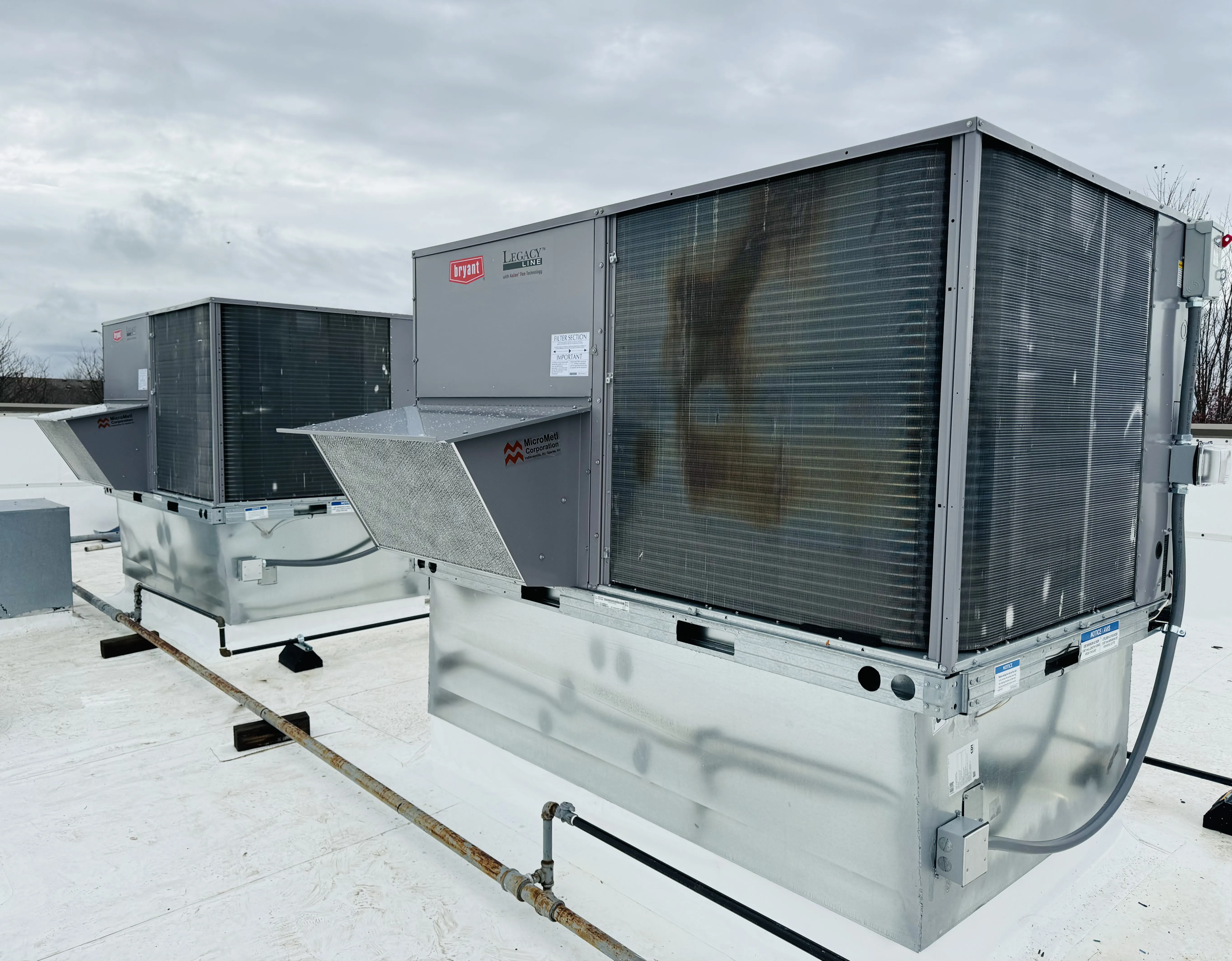 Professional installation of commercial HVAC equipment including rooftop units, boilers, chillers, and air handlers backed by manufacturer warranties.